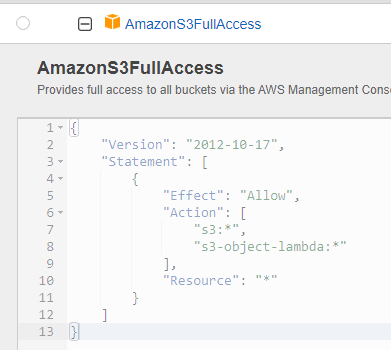 IAM policy 예시이다.